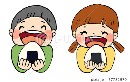 おにぎりをおいしそうに食べる女の子と男の子のイラストセットのイラスト素材77782970- PIXTA。