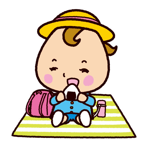 運動会でおにぎりを食べている子どものイラスト無料のフリー素材 イラストエイト。