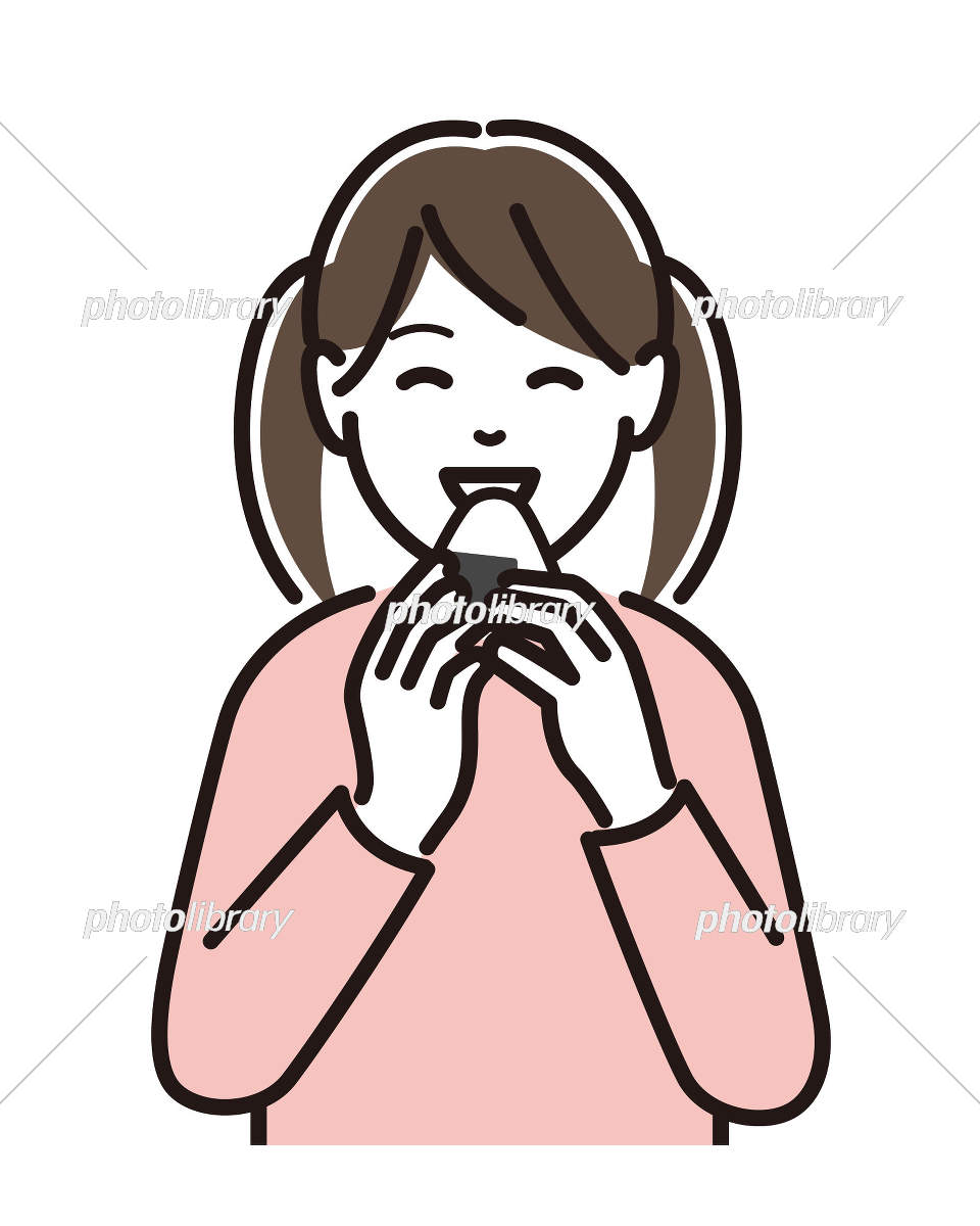 おにぎりを食べる女性のイラスト素材108066136- PIXTA。