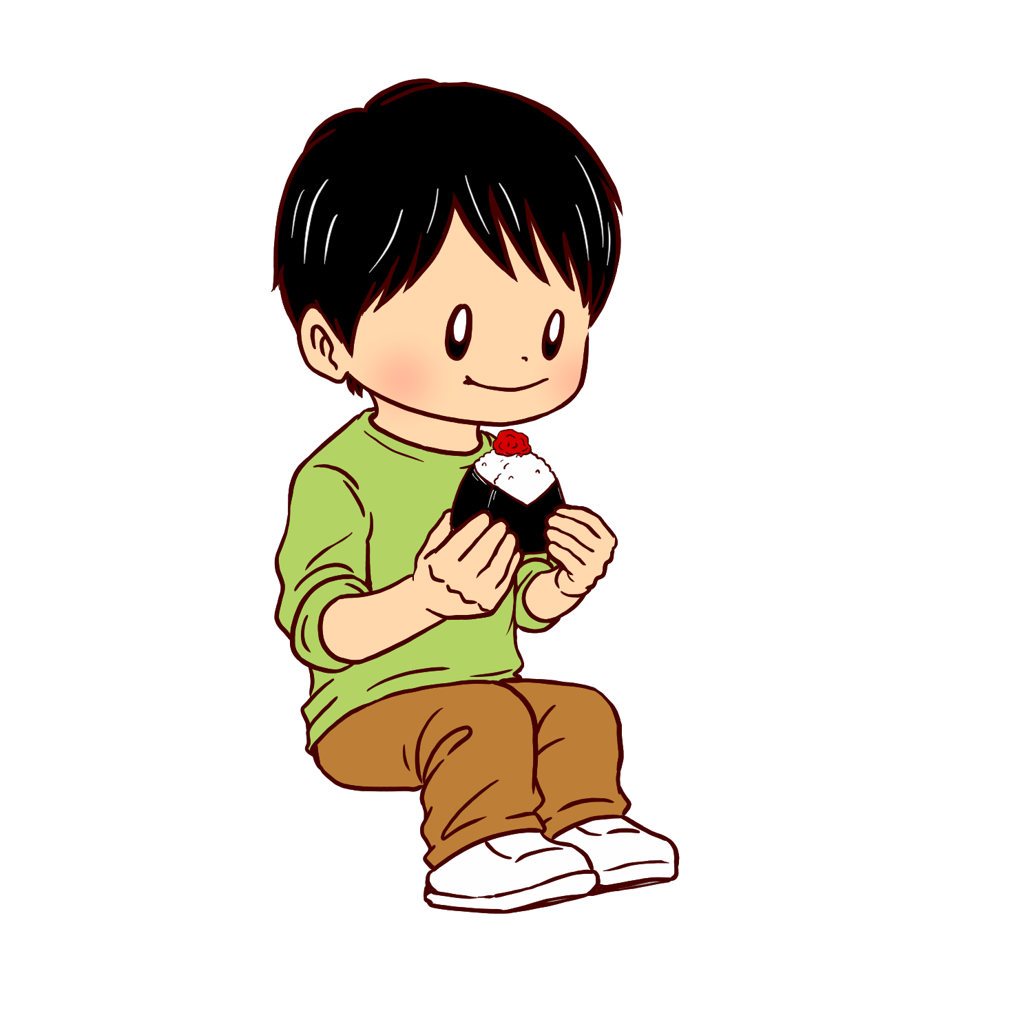 おにぎりを食べる男の子のイラスト - 無料イラストのIMT 商用OK、加工OK。