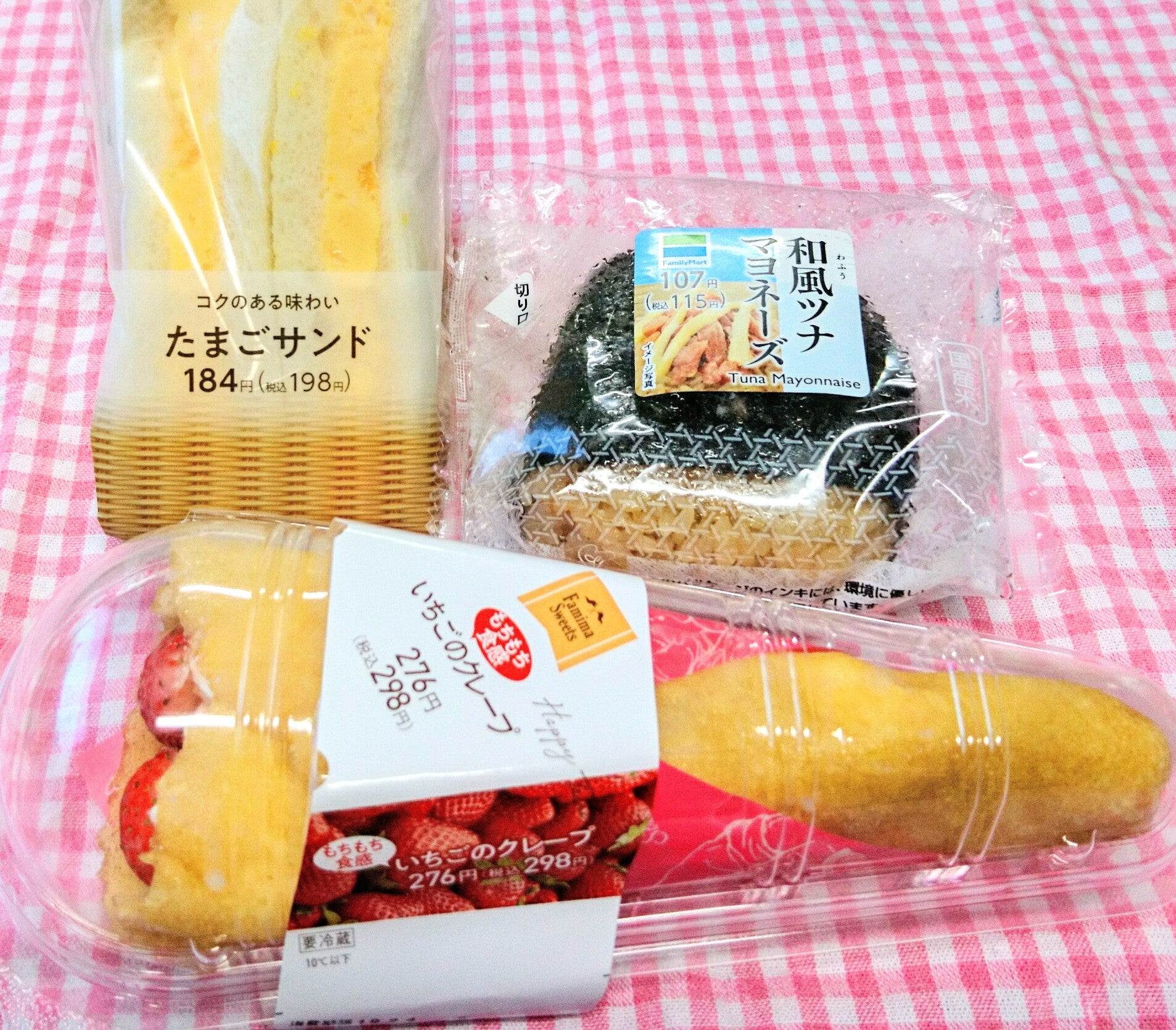 ファミマの朝ご飯♪ たまごサンド、和風ツナおにぎり、苺のクレープ♡ツチノコ ぶろぐ。