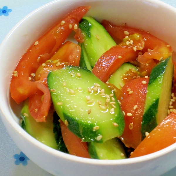 レシピ トマトときゅうりのにんにくポン酢漬け - しにゃごはん blog。