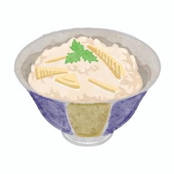 たけのこご飯の水彩画のイラスト素材FYI04805443ストックフォトの Qlean Market キュリンマーケット。