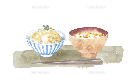 たけのこご飯と味噌汁の水彩画のイラスト素材FYI04805444ストックフォトの Qlean Market キュリンマーケット。