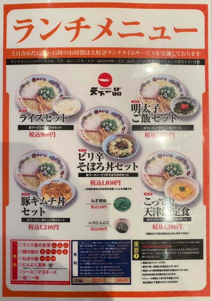 金石にある唯一の有名チェーン。天下一品金石OMEGA店🍜 - 金沢のグルメと観光、ときどき大家さん。