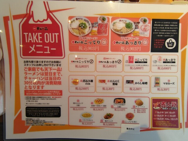 メニュー写真 :閉店 天下一品 金石OMEGA店てんかいっぴん- 金沢市その他 ラーメン食べログ。