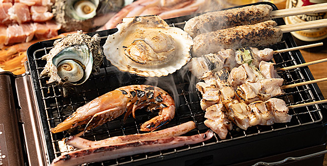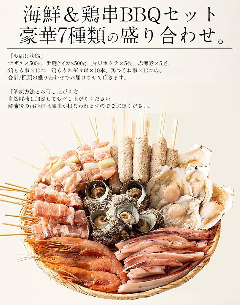 Amazon.co.jp: 港ダイニングしおそう 海鮮&鶏串バーベキューセット 7種 盛り合わせサザエ イカ ホタテ 海老 鶏もも串 ねぎま つくねBBQ バーベキュー バーベキューセット 海鮮 貝 海老 イカ 焼き鳥 冷凍 冷凍食品 ご家庭用 ギフト : 食品・飲料・お酒。