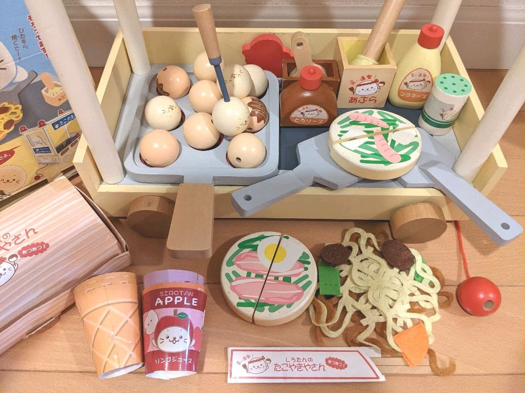 マザーガーデン しろたんや お祭り屋台 たこ焼き屋さんセット 木のおままごと。