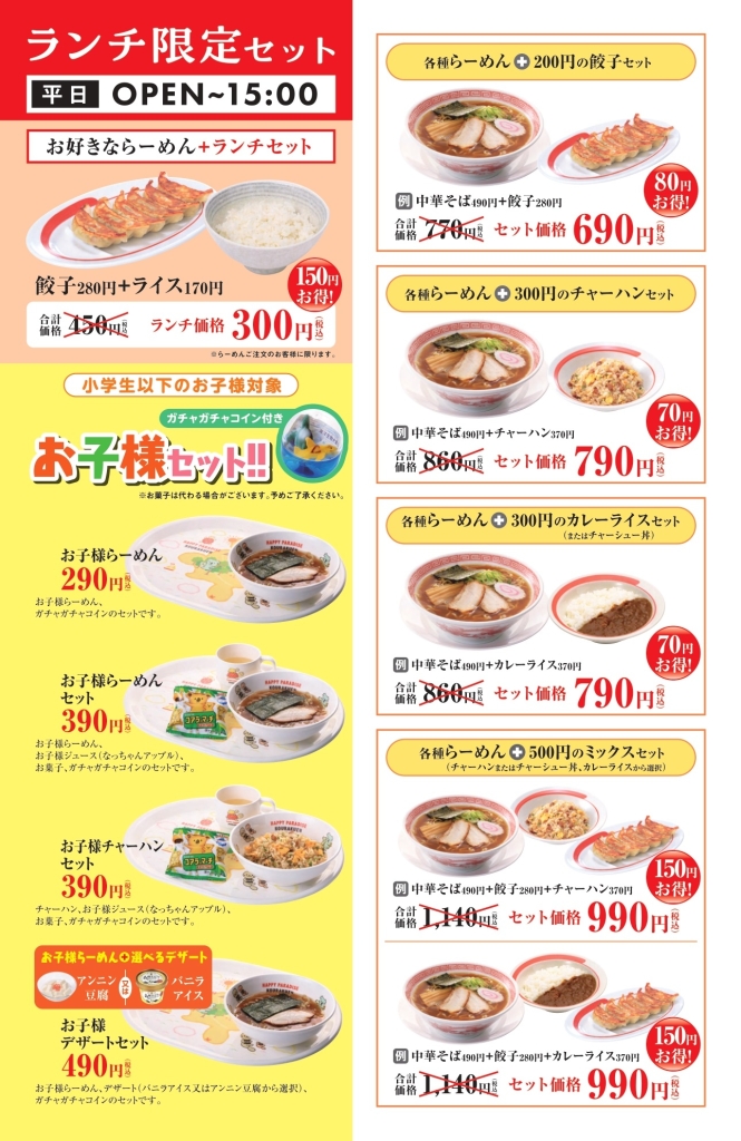 幸楽苑、「お子様セット」を平日無料で提供!土日祝は100円引き - グルメ Watch。