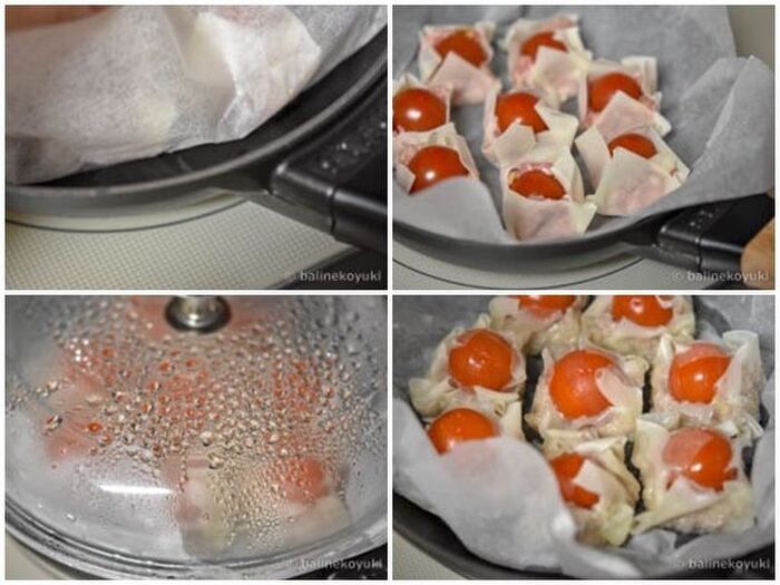 レシピ フライパンで作る簡単!ヘルシー!ジュワッとジューシー「トマト焼売」。