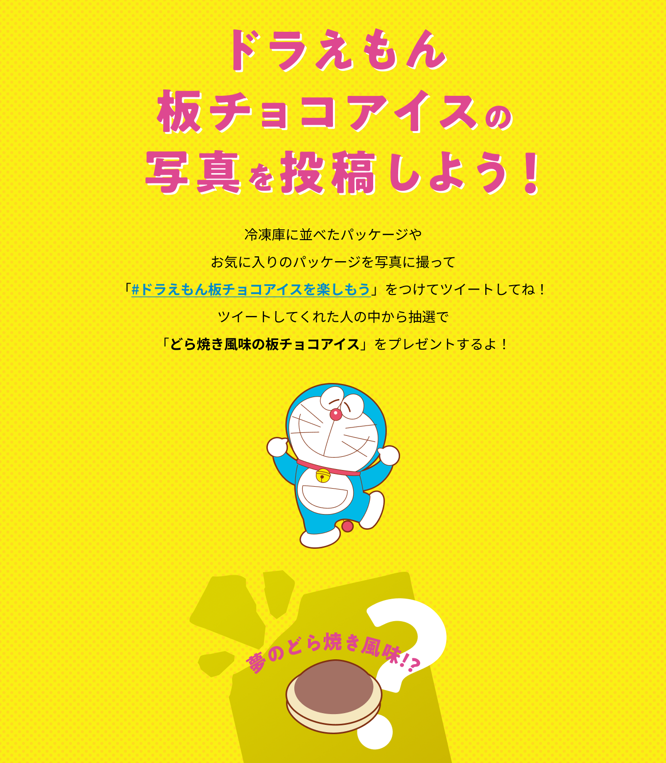 ドラえもん板チョコアイス』発売、のび太“いっしょうけんめいのんびりしよう”、「どら焼き風味の板チョコアイス」などプレゼント、スマホでひみつ道具体験も 森永製菓食品産業新聞社ニュースWEB。
