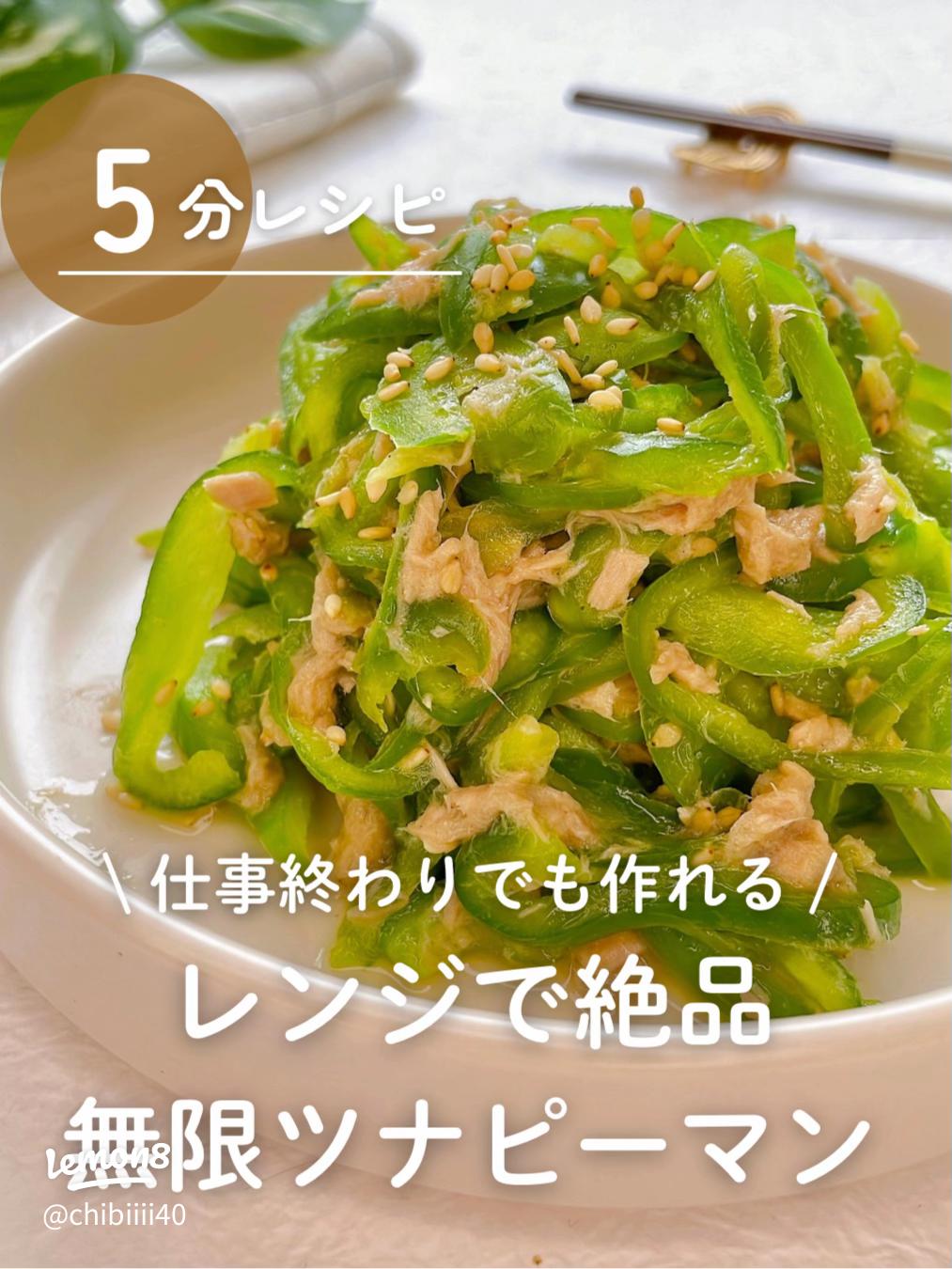無限ツナピーマン レンジで2分♬︎大人も子どもも大満足。