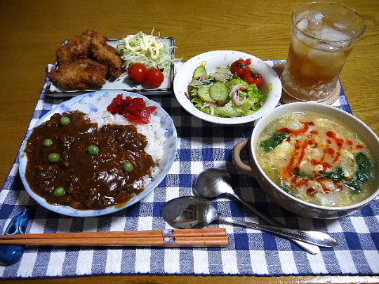 夕食 ハヤシライス・鶏肉竜田揚げ・レタスのサラダ: THE LAST SASURAI ~自炊ニストの食卓~。