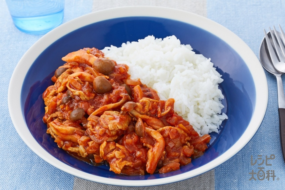 完熟トマトのハヤシライス 蒸し鶏のバジルドレッシングサラダ 食材宅配のヨシケイ 夕食ネット レシピ・メニュー・献立付き。