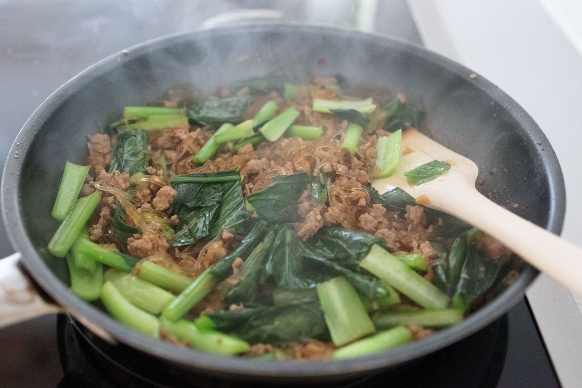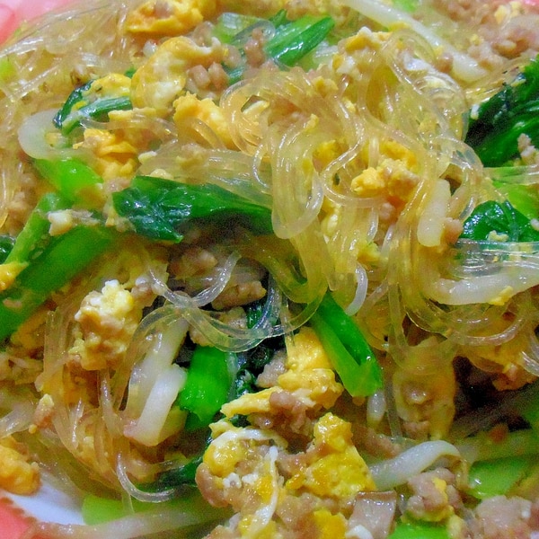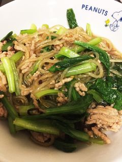 簡単料理 フライパン1つで簡単に出来ちゃう♪小松菜と挽き肉のチャプチェ 作り方 レシピ 手抜き 節約 主婦の独り言。