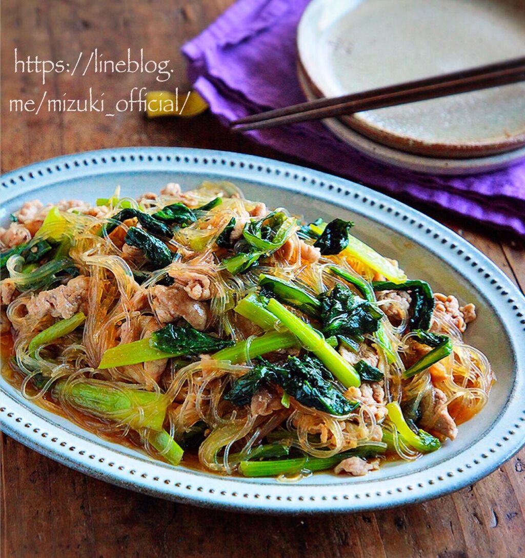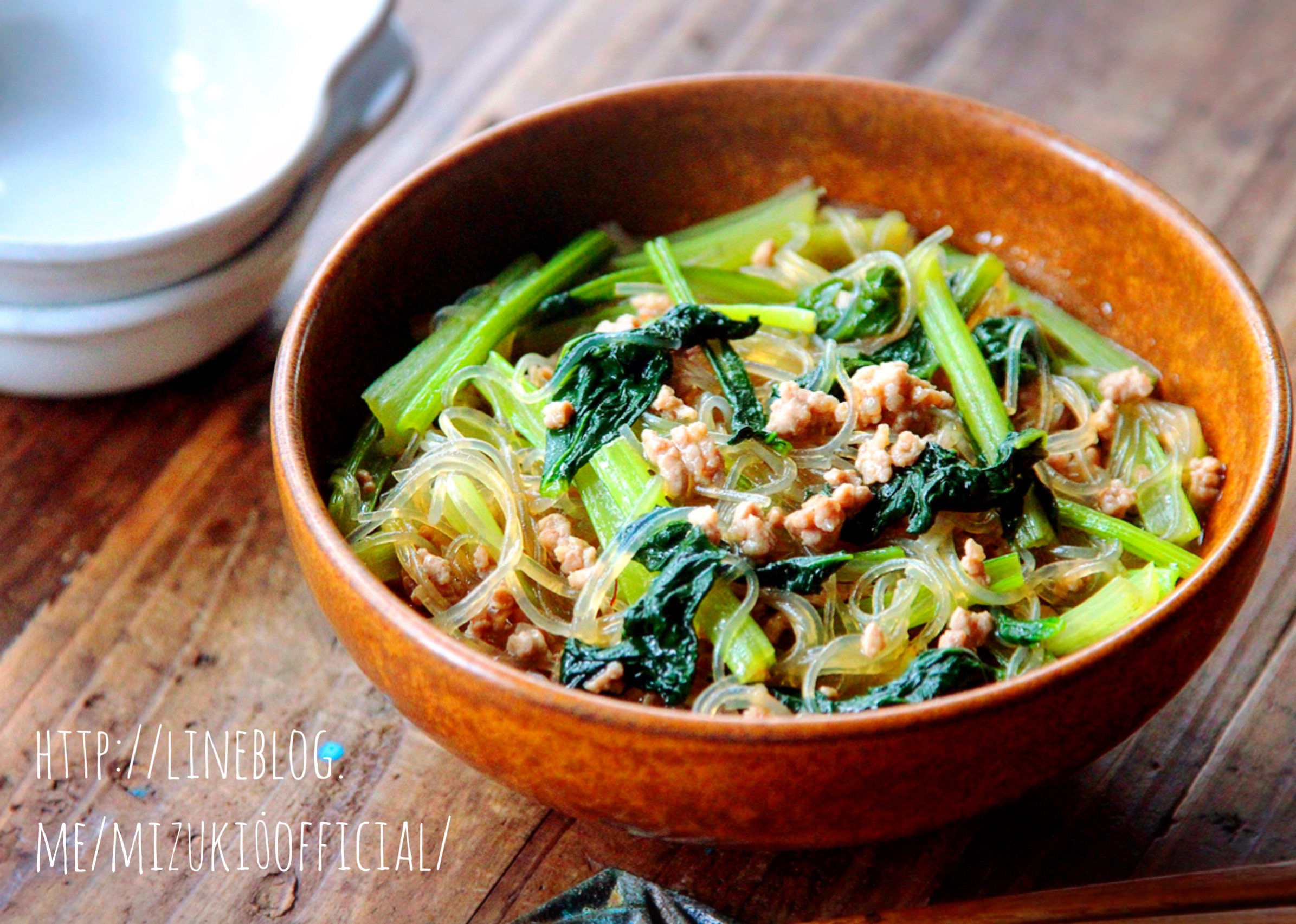 ♡戻さないから超簡単!ひき肉と小松菜の春雨煮♡簡単レシピ時短節約きのこMizukiオフィシャルブログ 「♡奇跡のキッチン♡」。
