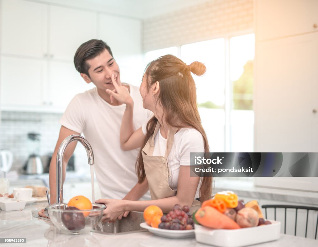 カップルは自宅の台所で料理を一緒に - 2人のストックフォトや画像を多数ご用意 - 2人, からかう, アジア大陸 - iStock。