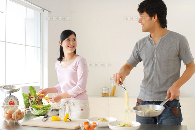 一緒に料理をつくるカップル 11038006923 の写真・イラスト素材アマナイメージズ。