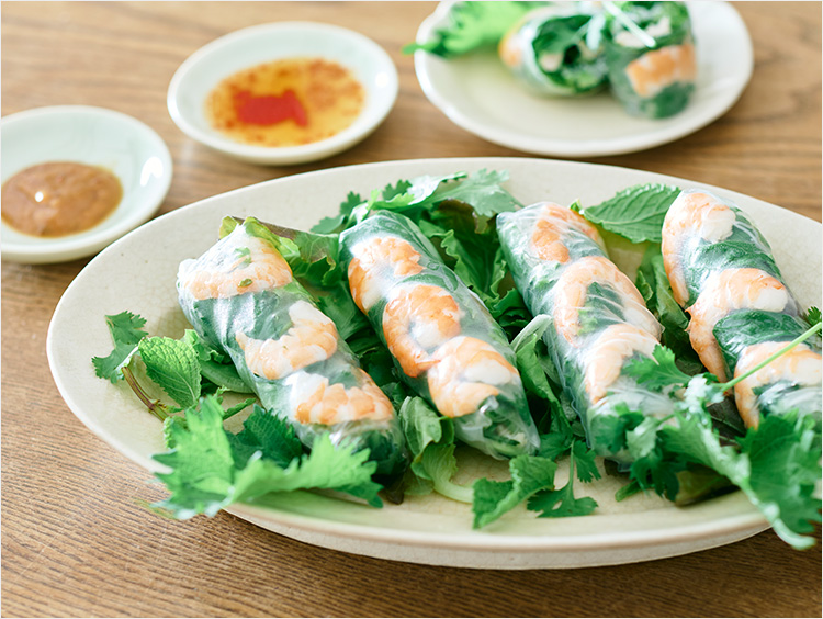 えびと蒸し鶏の「生春巻き」プロのレシピ タレ2種 。皮の巻き方のコツを徹底解説!三越伊勢丹の食メディアFOODIE フーディー。