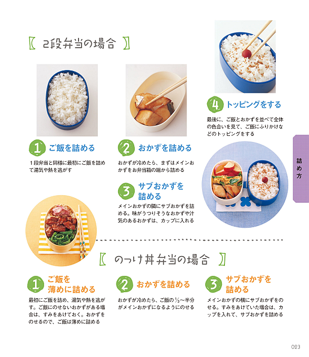 お弁当をきれいに詰める順番が知りたい!『覚えておきたい!お弁当の基本111』扶桑社。