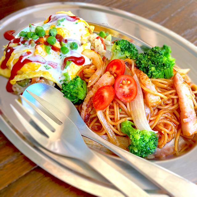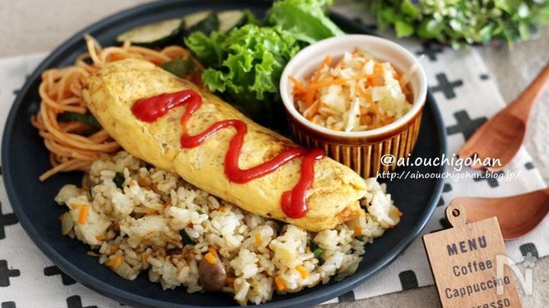 オムライスワンプレート メニュー *オムライス *ミートソースパスタ *サラダ いつかのおうちごはん。 大人のお子様ランチ風オムライスです。 オムライスは一人前。これじゃ足りないからパスタ半人前もつけてチキンライスは沢山作ったのでいつものように冷凍。