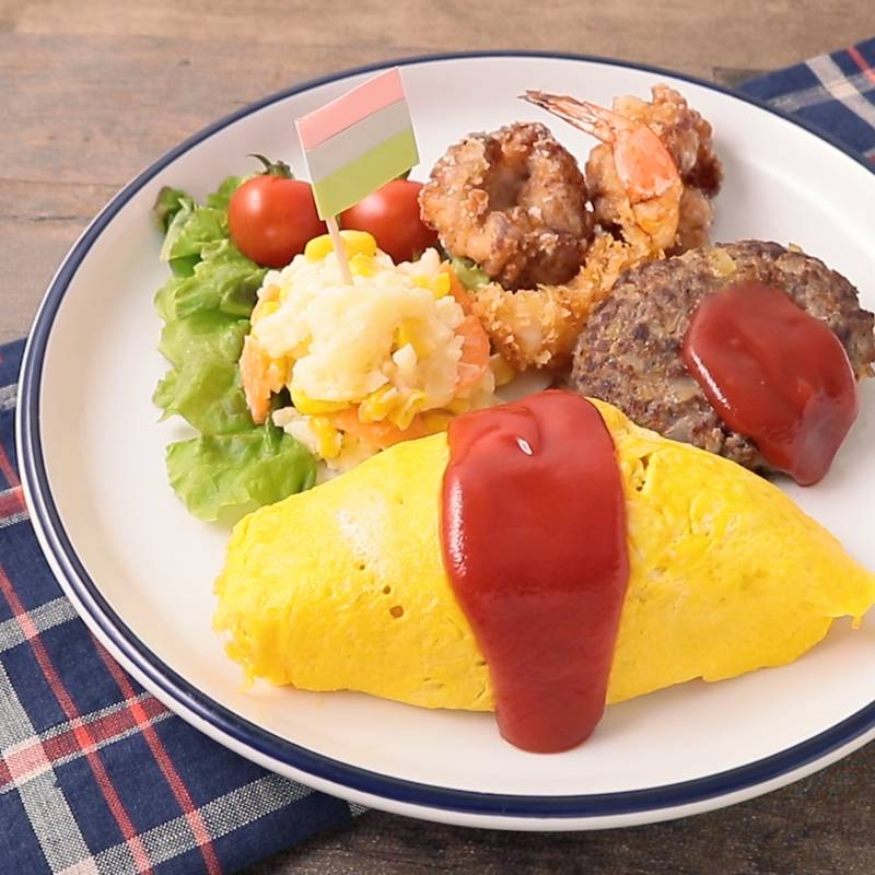2018・10・26 * 大人のお子様ランチ🍴 * ☆オムライス ☆ハンバーグ ☆海老フライ ☆マカロニサラダ *全部好きなものばかり❗️の夢のようなプレート✨ なんだけど、、、 作るとなると結構大変😅だったりする *クッキングラムおうちごはんおうちごはんlover。