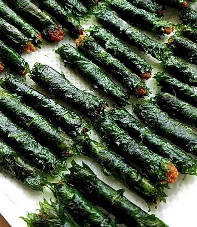 しそ巻きの作り方 ハチハチおばあちゃんが作るしそ巻き 昔からのふるさとの味 しその葉で味噌を包んで、油で揚げてあるのでご飯にピッタリ。