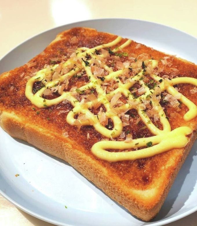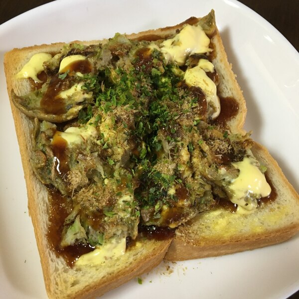 お好み焼きトースト お好み焼きもトーストも両方欲張り。