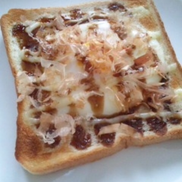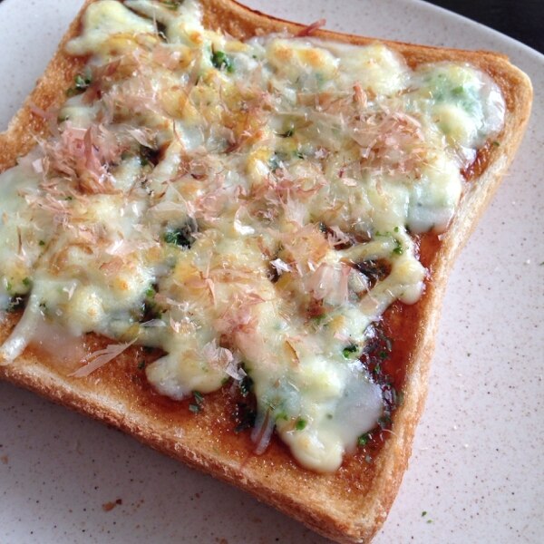 朝からガッツリお好み焼き風トースト鰹節 かつおぶし ・だしの素・つゆのマルトモ。