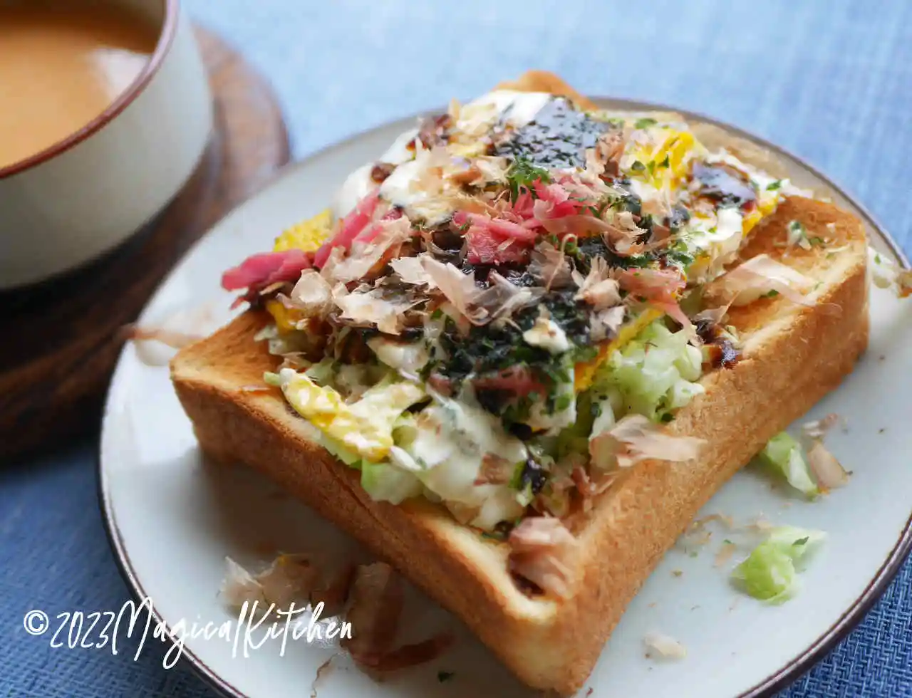 囲みマヨでおいしさ爆発! 巣ごもり お好み焼きトーストの レシピ 作り方。