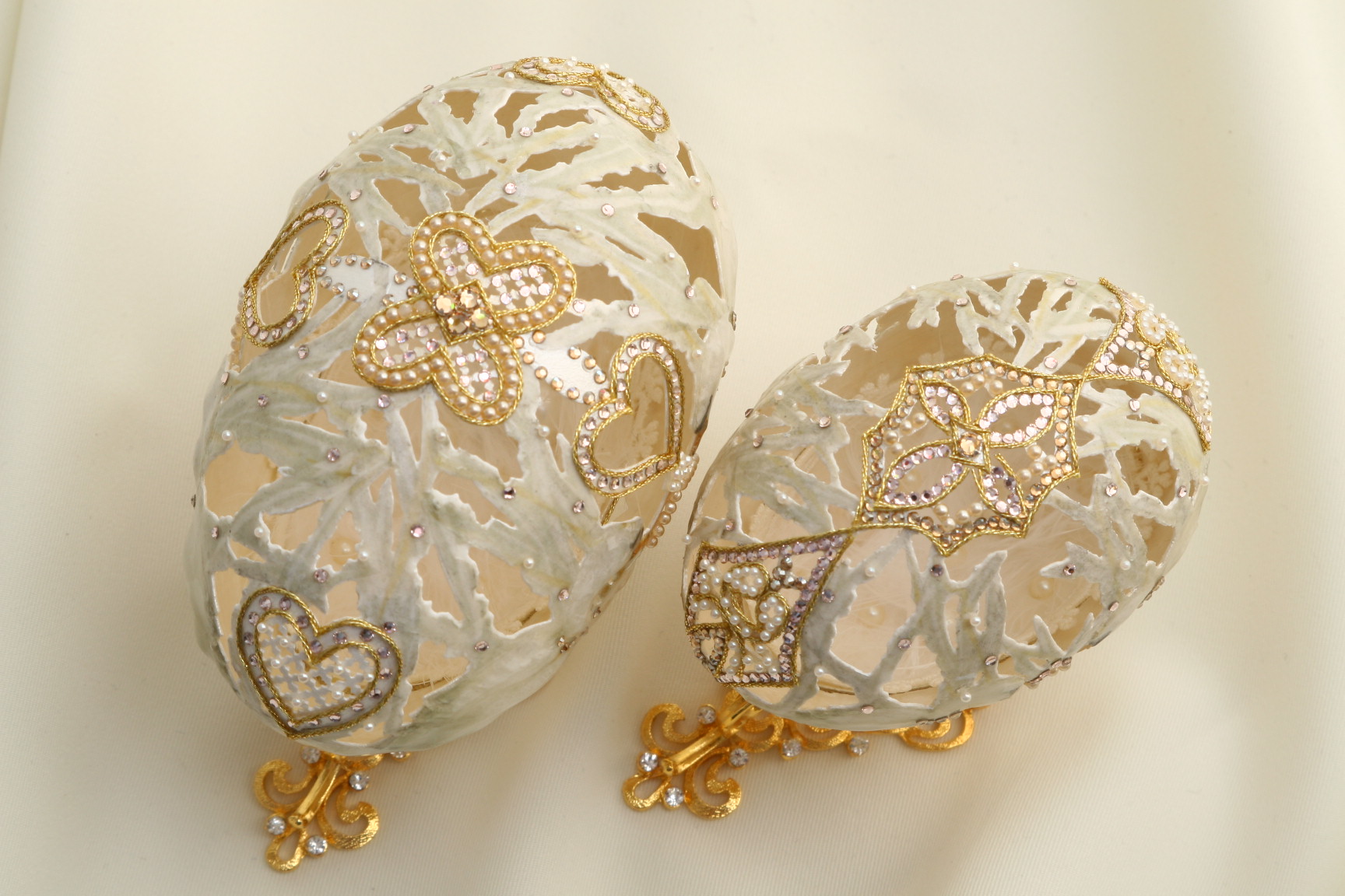 今日はイースターです。 これらはエッグアート。お花にレース、そしてキラキラ。可愛いい💕 海外で見つけて集めています。イースターは復活祭であり、春のお祭りです。 エッグアートは、ダチョウの卵の殻で作られています。 小物入れになってたり、オールゴールが仕込ま。