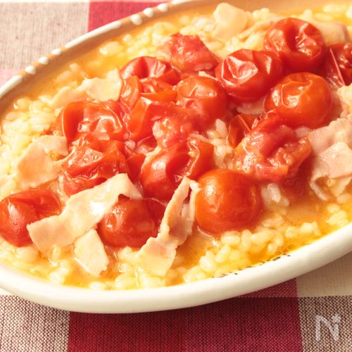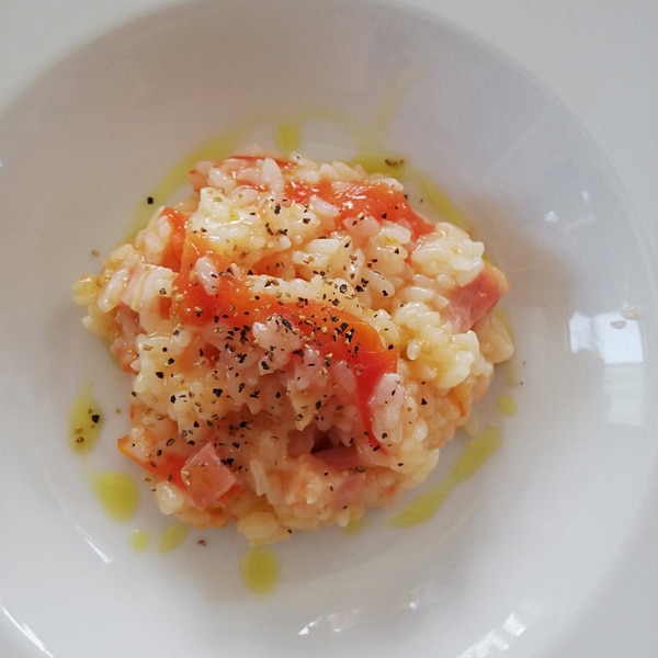 本格トマトとベーコンリゾット 生米からレンジで簡単♪。