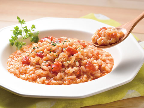 炊いたご飯で作る!お手軽トマトリゾットレシピエスビー食品株式会社。