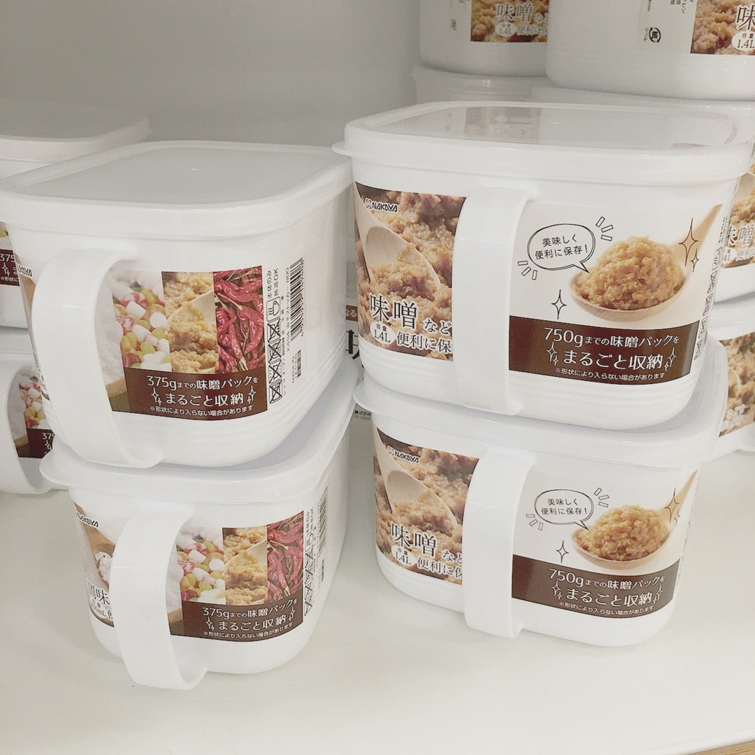 100均の『みそストッカー 1400』が味噌パックを収納して取っ手付きで便利!買てみた。