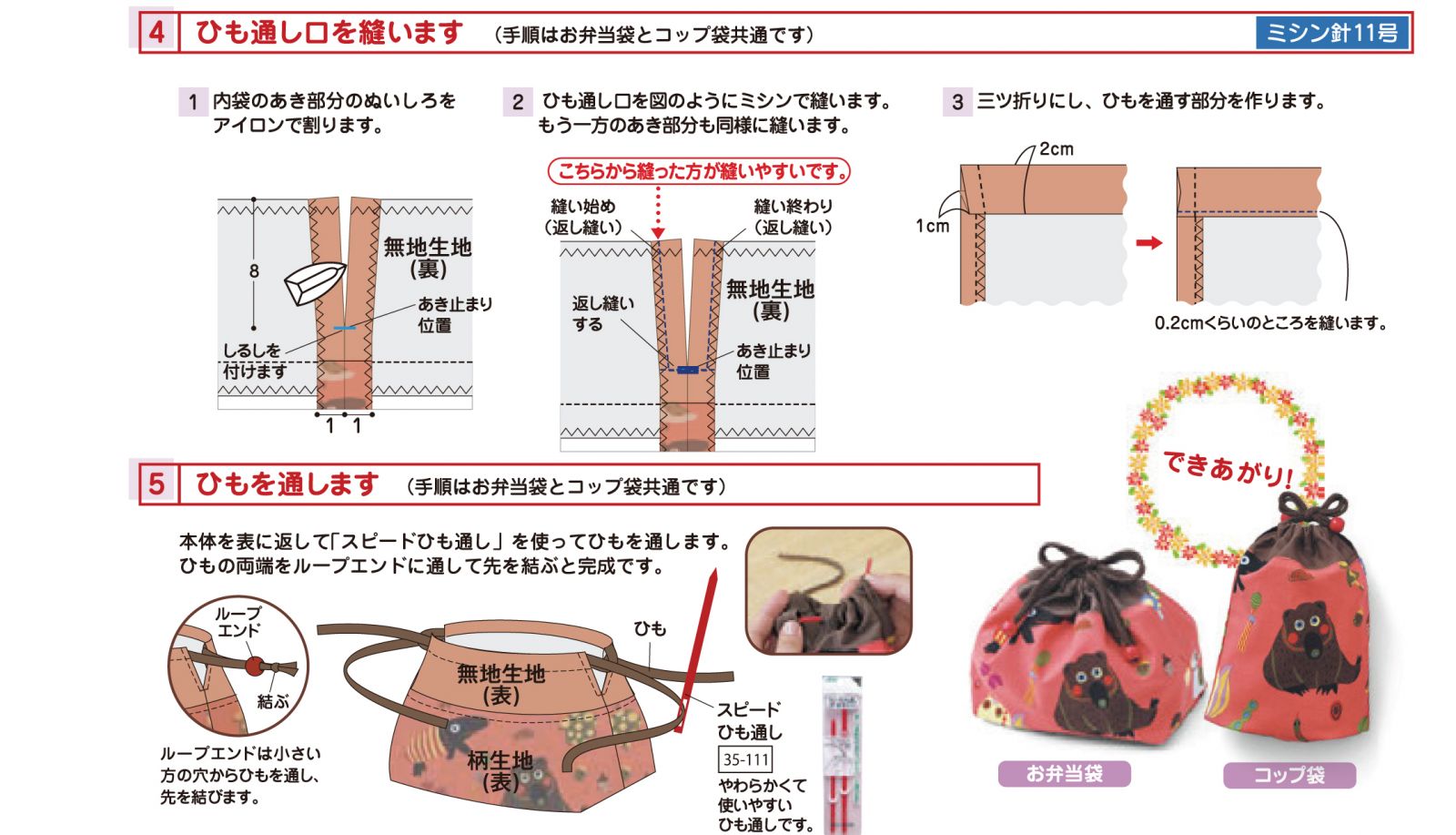お弁当袋 コップ袋 ティッシュケース入園・入学手づくりレシピそーいんぐ.com。