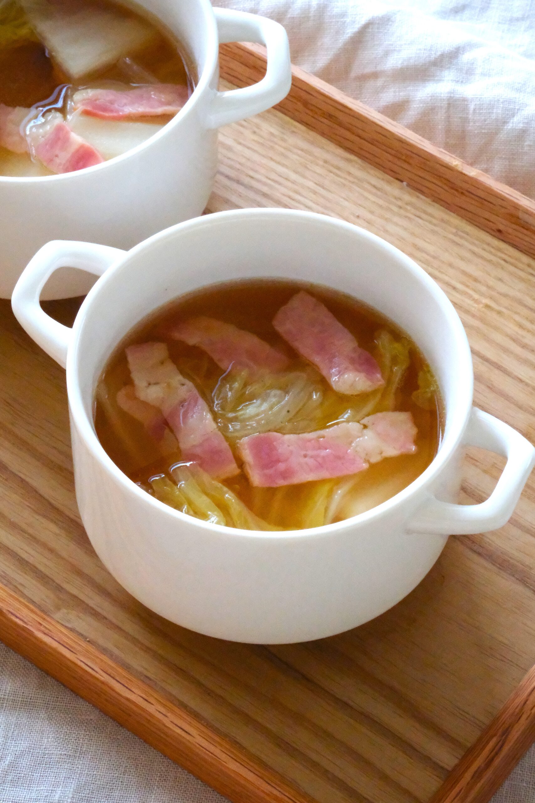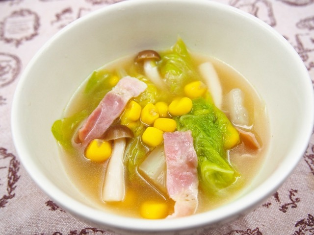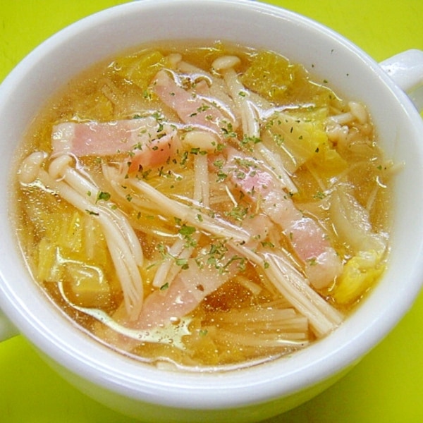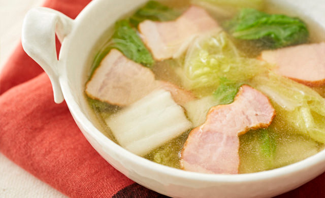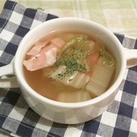ホッと温まる♪ ベーコンと白菜のとろとろコンソメスープ。