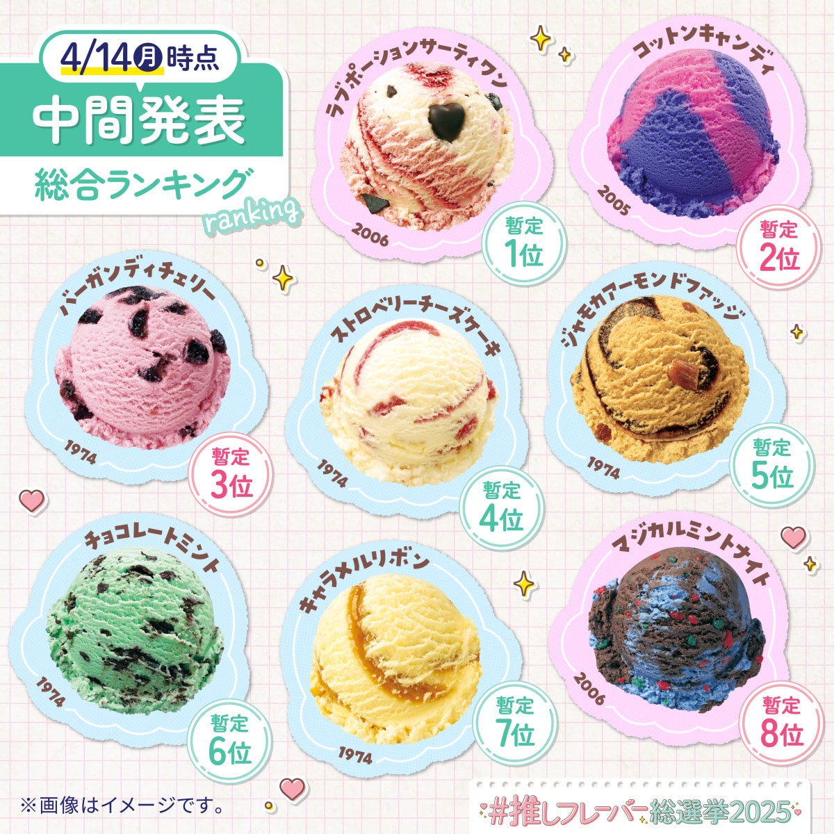 復刻と人気No.1をかけた サーティワン #推しフレーバー総選挙2025 4 14時点 中間発表!!B-R サーティワンアイスクリーム株式会社のプレスリリース。
