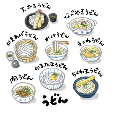 まとめ うどんのフリーイラスト素材集イラストイメージ。