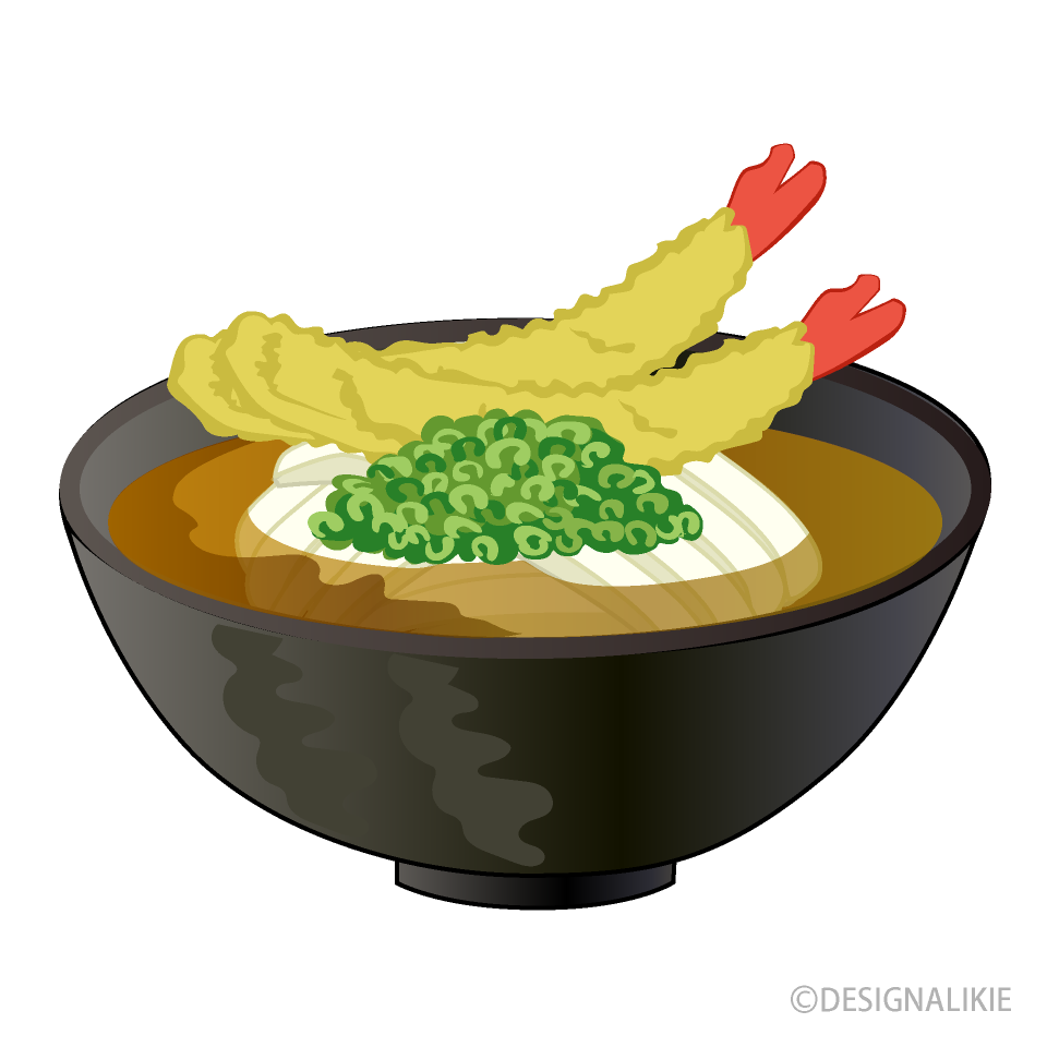 天ぷら讃岐うどんイラストのフリー素材イラストイメージ。