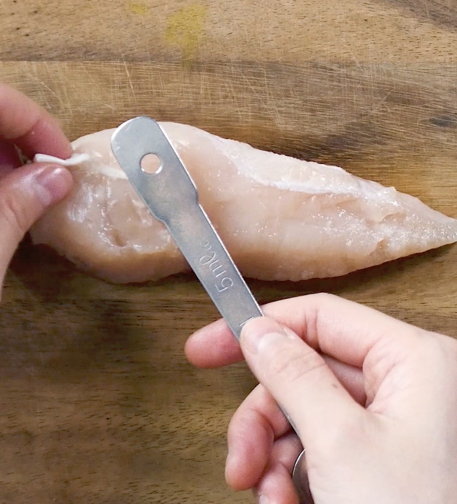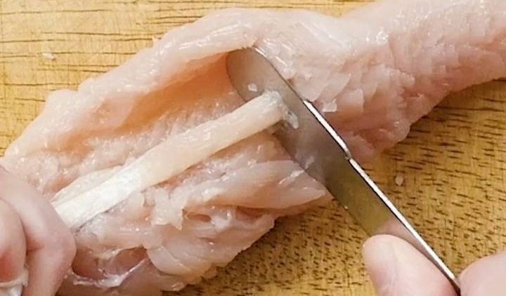 ささみの筋の取り方 - 肉の下ごしらえ 料理の基礎レシピサイトNadia。