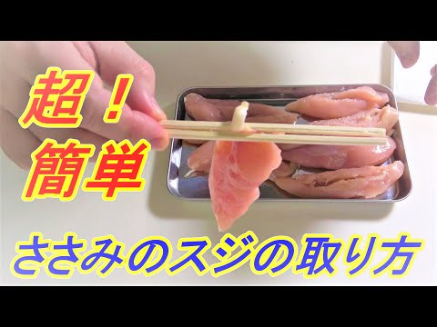簡単 鶏ささみのスジの取り方 ~割りばしを使って楽々 ~ - YouTube。