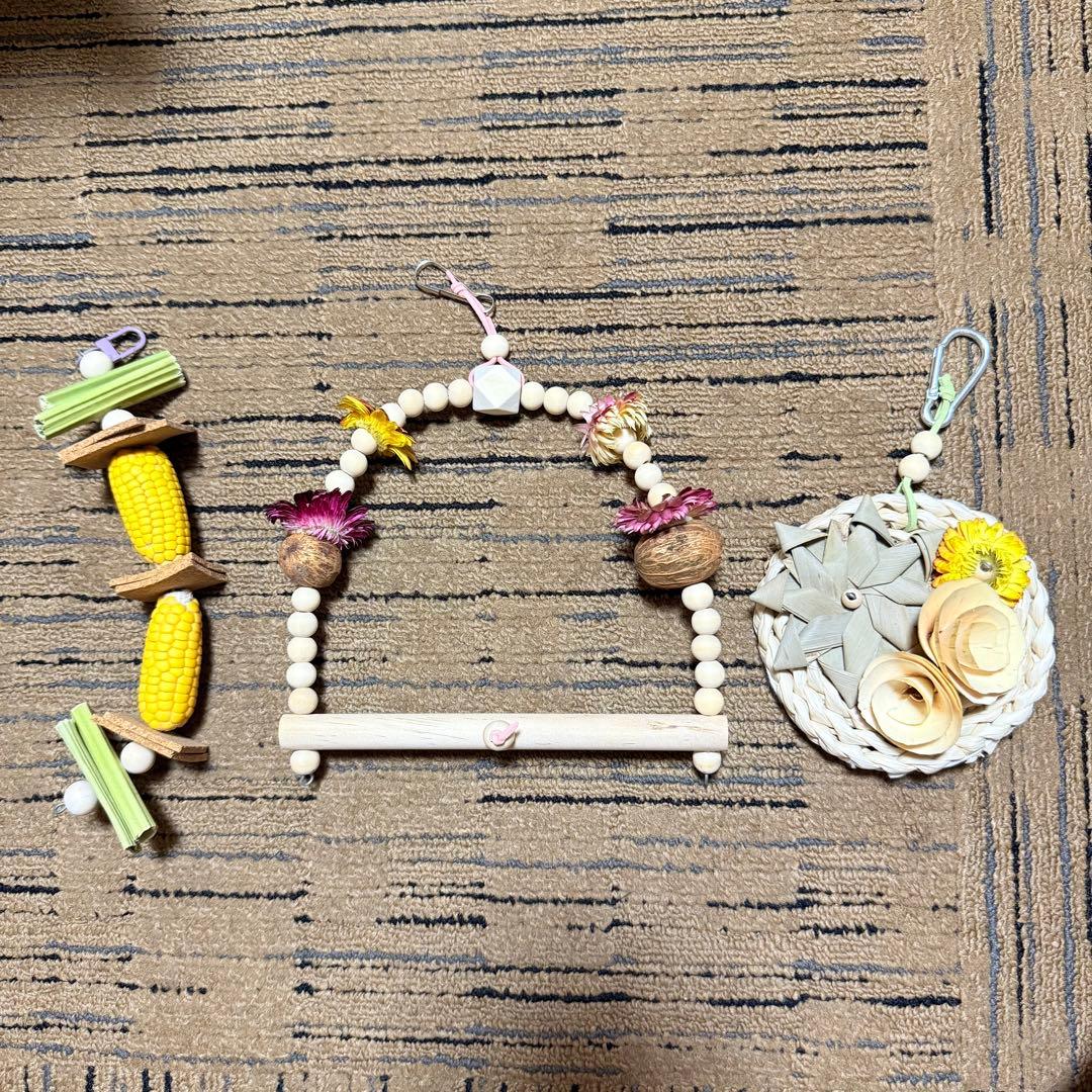 インコ おもちゃ 3点セット 天然素材 手作り 止まり木 鈴付き - メルカリ。