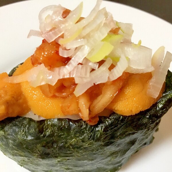 編集長おいしいね😋 ~ウニ軍艦巻き~ ウニには、昆布の旨味成分のグルタミン酸が豊富で、アミノ酸の一種のメチオニンも含まれており、実はこのメチオニンが、 ウニ独特の旨味に関与していると言います。本日は大将渾身のウニ軍艦巻き〰😋 美味しく健康に、自然の恵みに。