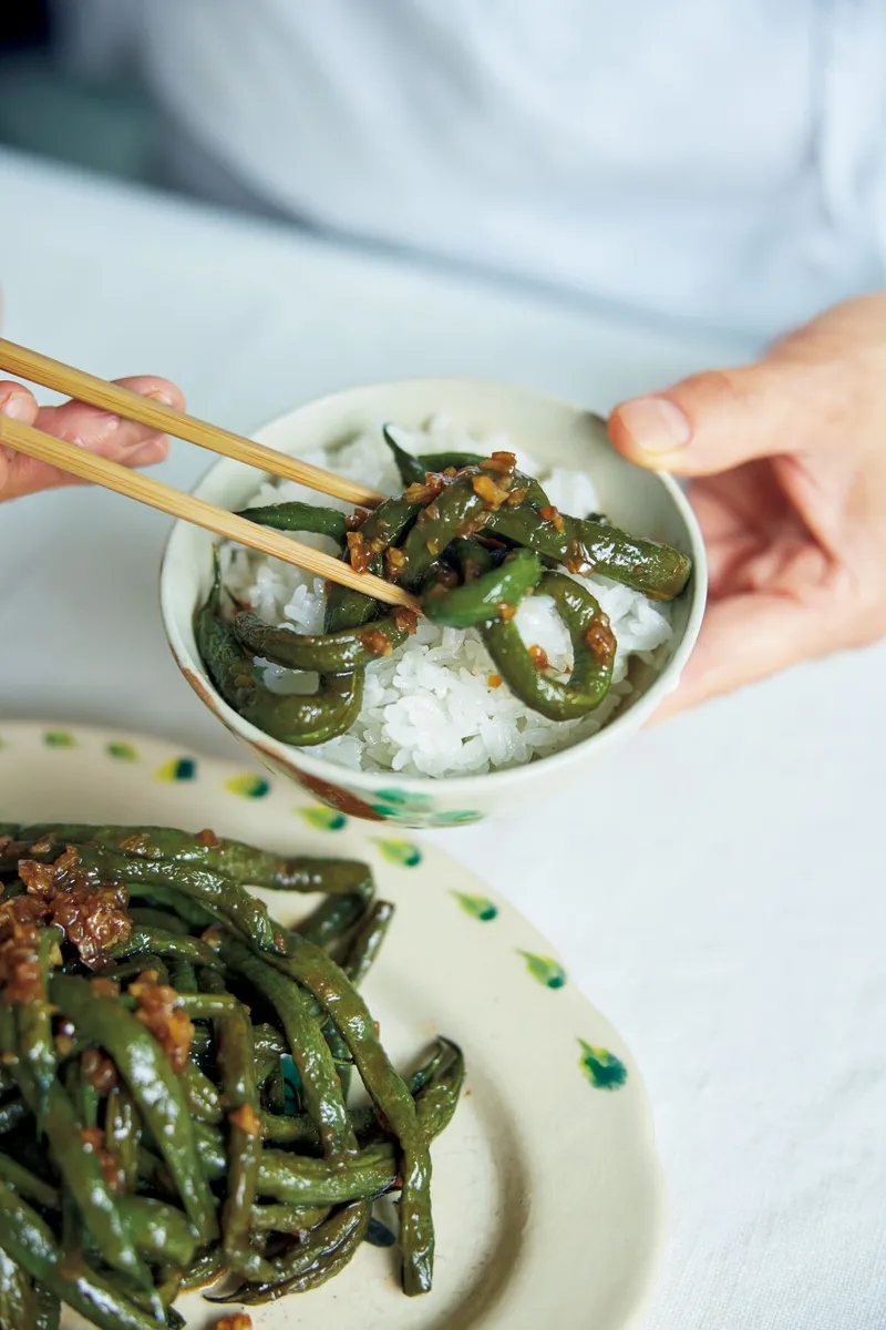 有元葉子さんのおうち時間ごはん「いんげんのおかか煮」。