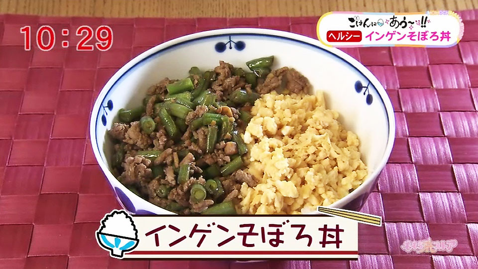 インゲンそぼろ丼主婦 ごはんにあう~ レシピ集ももち浜ストア番組公式サイト - テレビ西日本。