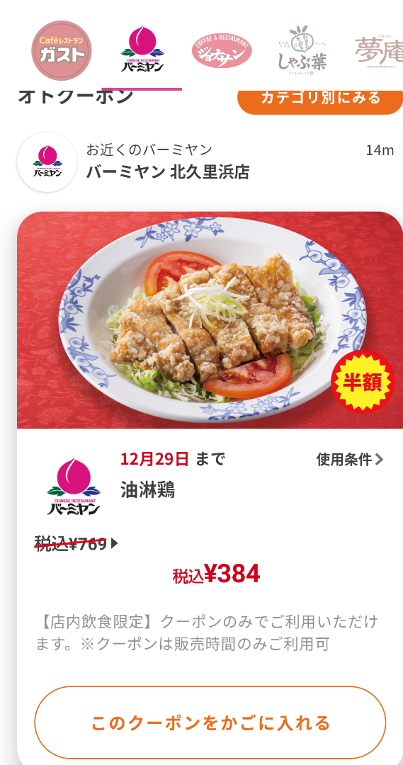 バーミヤンで油淋鶏、すかいらーくグループ半額クーポン祭りを堪能!GO父さんのブログ。