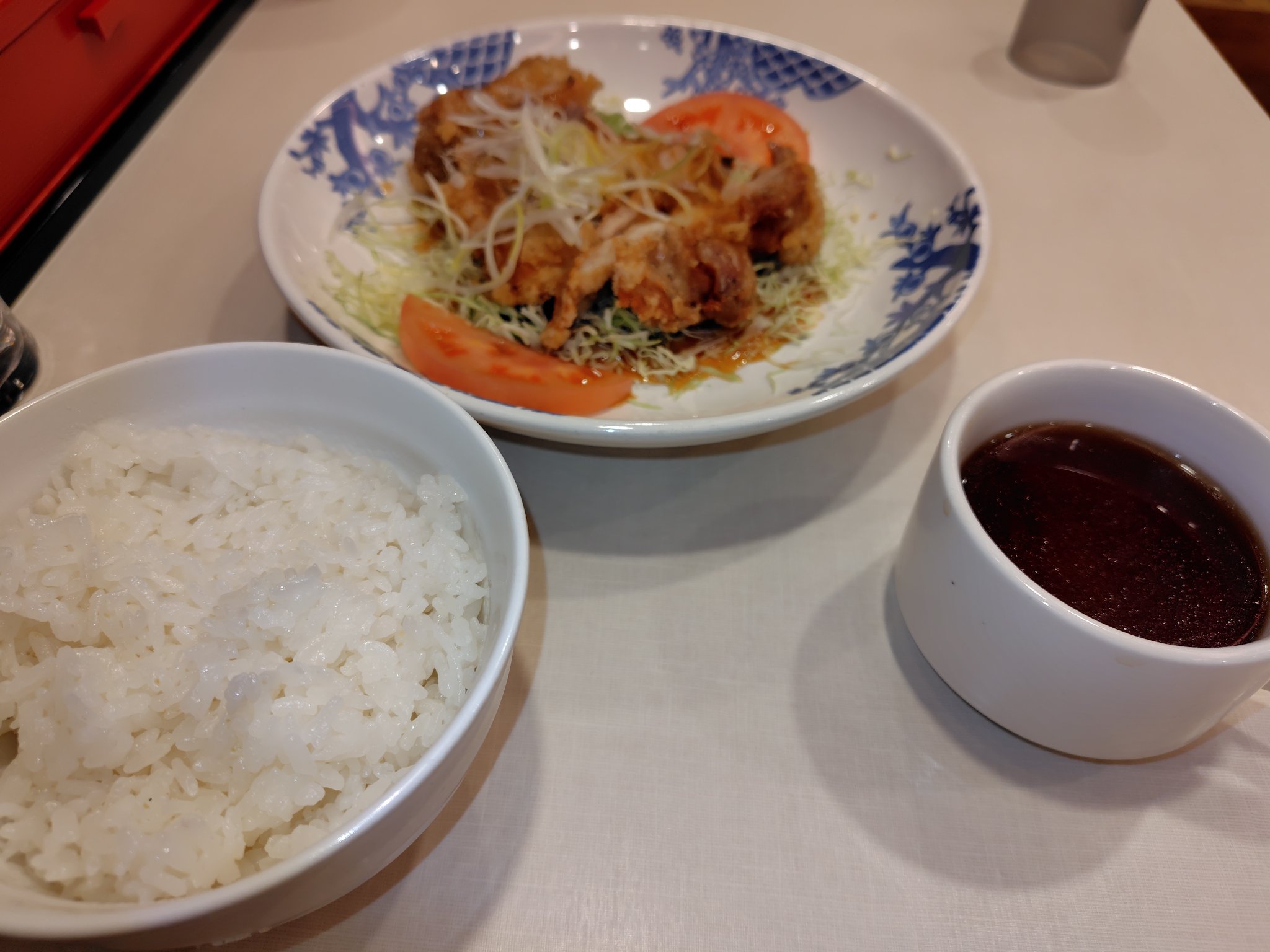 白湯 on X: "ランチはバーミヤン。油淋鶏の半額クーポンあったので💕 桃まんもおいしかったです🙂https:t.co V07JnK6Pxj"X。