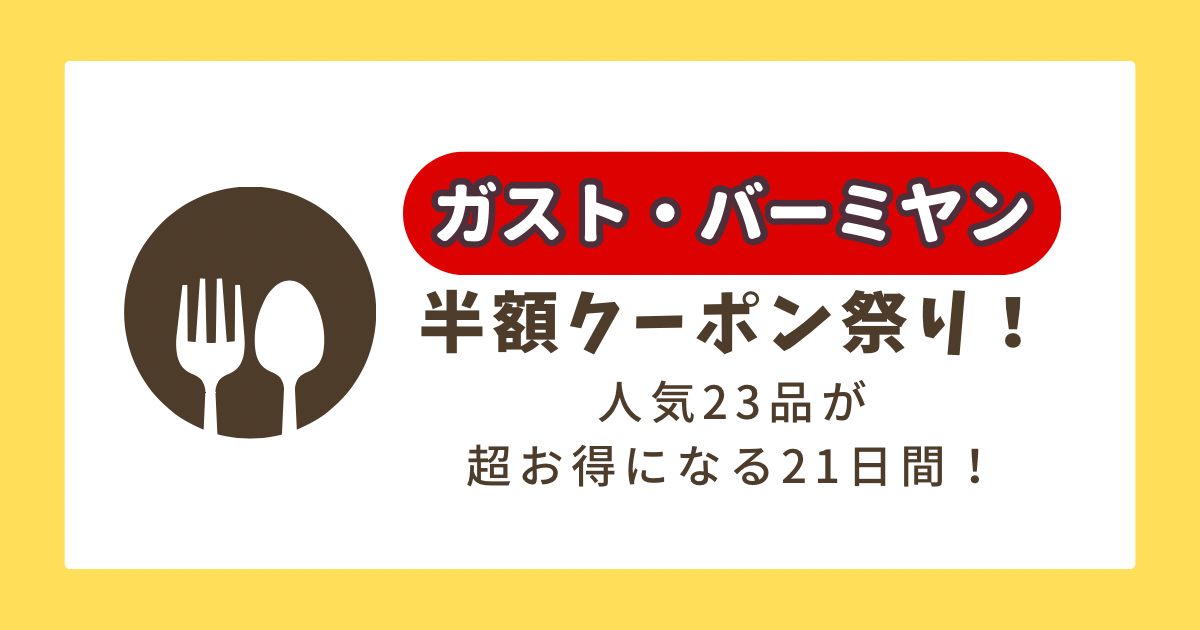 ガスト・バーミヤンなどで『半額クーポン祭り』開催!大人気メニューが半額で食べられる 超お得な年末大感謝セール3ページ目暮らしニスタ。