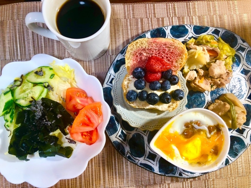ブランパンのブルーベリーサンドのランチ おかずのカレーになぜ、たまご爆弾 - 糖質オフのおうちごはん~持病があっても楽しく生きる~。