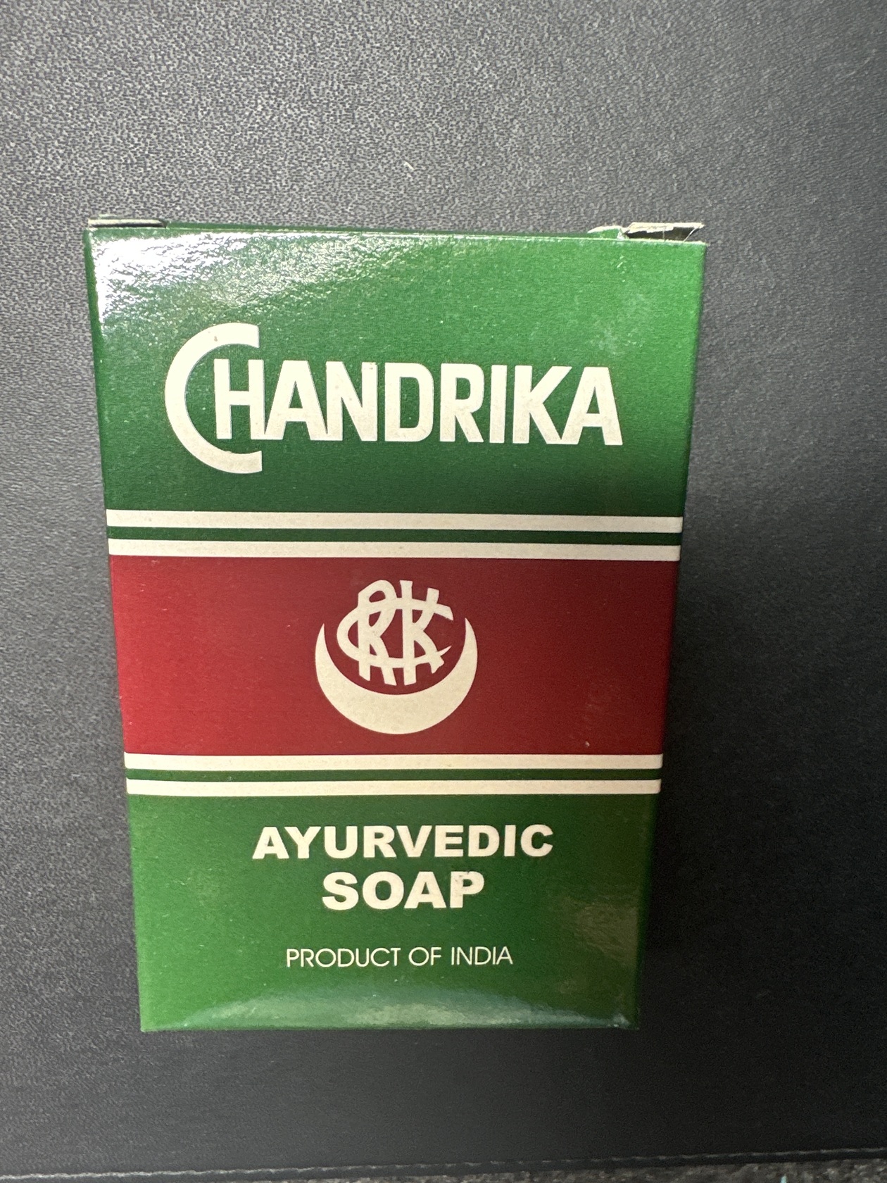 ⭐︎ シンガポールのムスタファセンターで購入した チャンドリカの石鹸です。 ハーブエキスと植物性オイルから作られた インドの石鹸です。動物性脂肪は使用していないようです。 紙の袋に入っていました。 香りはしっかりしたハーブの香りです。 すっきりとした香りです。